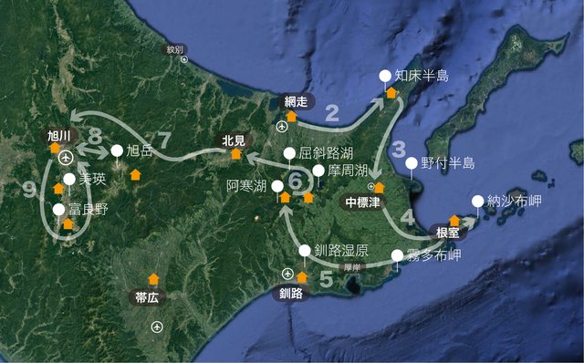 每一天的行程,其實就是住宿點之間的連線,因此是行程安排的重點,對於道東自駕這種