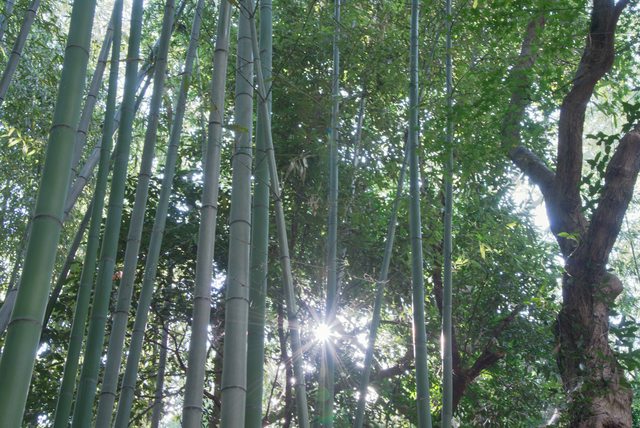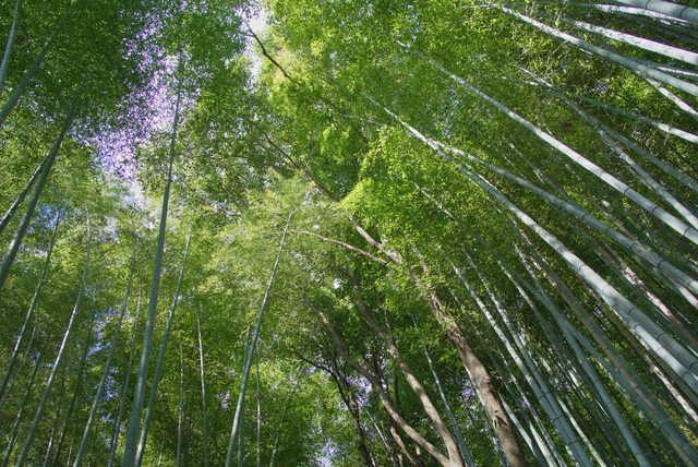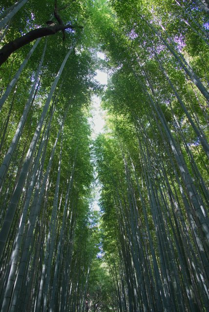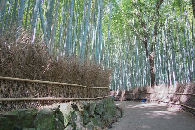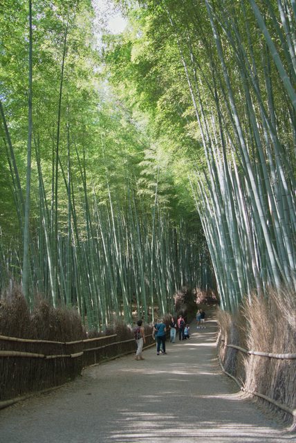 從嵯峨嵐山站下車,在清晨陽光下散步,不用多久高聳的竹林就出現在眼前。