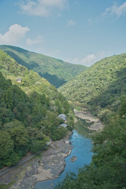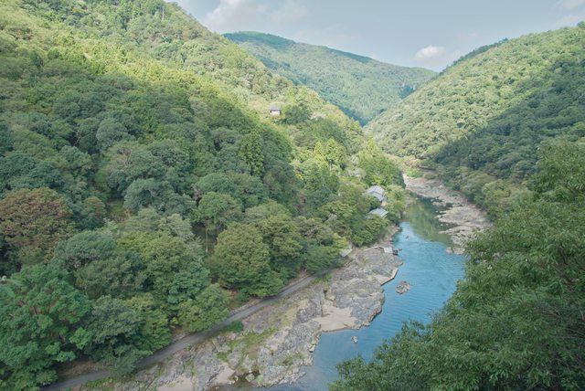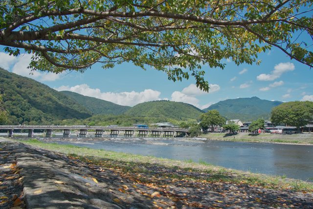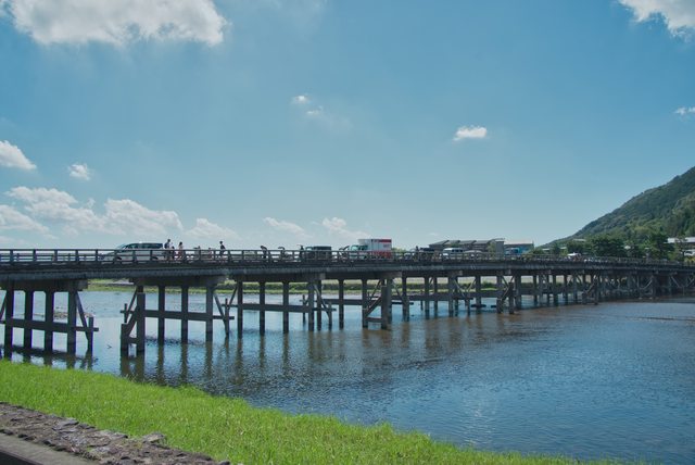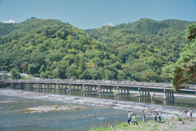 走著走著,來到保津川旁,京都最知名的一座橋就在這。