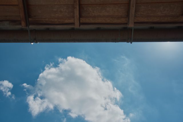 離開天龍寺前,先投了飲料,躲在屋簷下散熱,