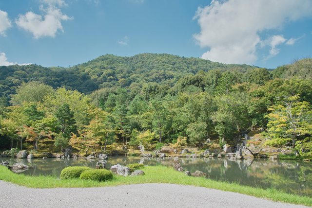 穿越樹林後,著名的曹源池庭園就在眼前。