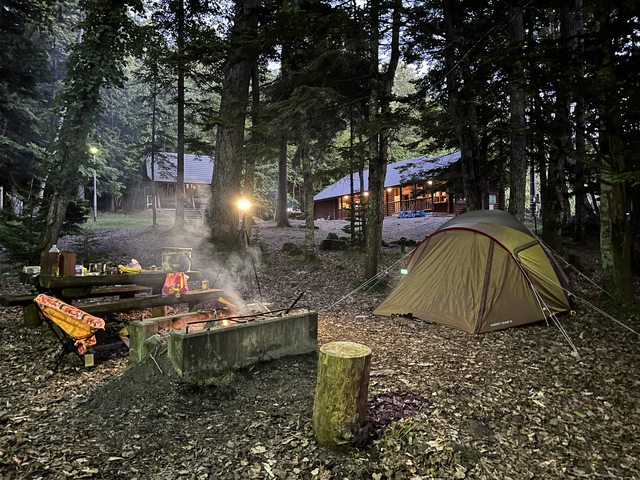 大部分日本露營區都是無電營區,故夜晚有插座與電燈是極為奢侈
