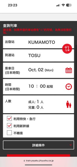 可是從一般訂票進去顯示的網頁沒有出現SL人吉相關字樣是正常的對吧?(因為我看報導說