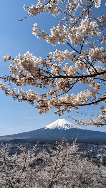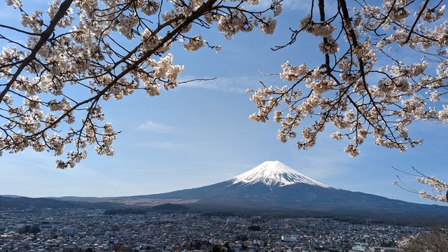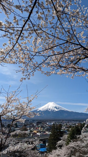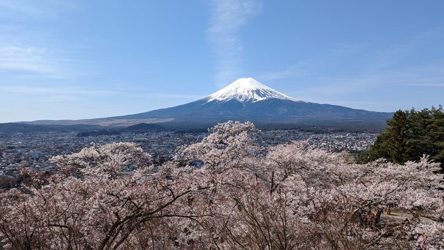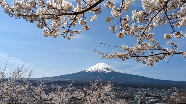 到了山頂後 滿滿的櫻花+富士山真的很好拍
