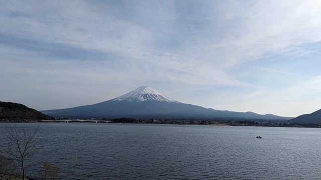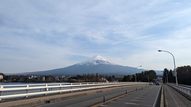騎在河口湖大橋上 看著富士山真的是超療癒