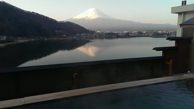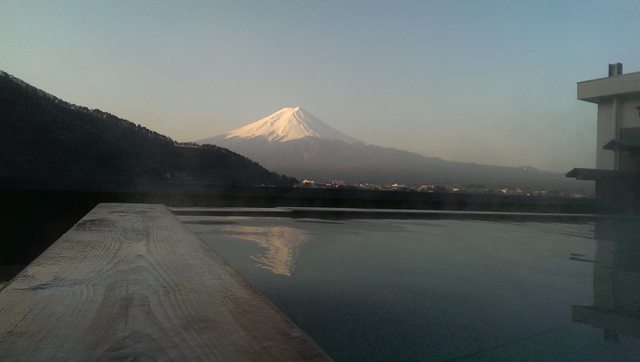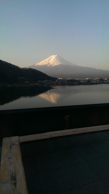 房間裡也是看得到 後來在露天溫泉也有看到逆富士
