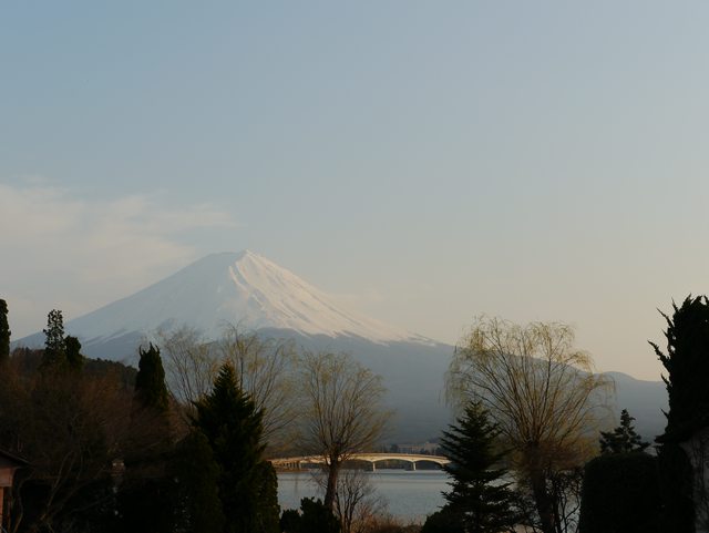 這一天巴士快到河口湖的時候就看到露臉的富士山了