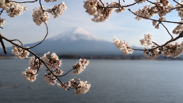 接著到河口湖北岸賞櫻 一樣是櫻花+富士山的拍攝