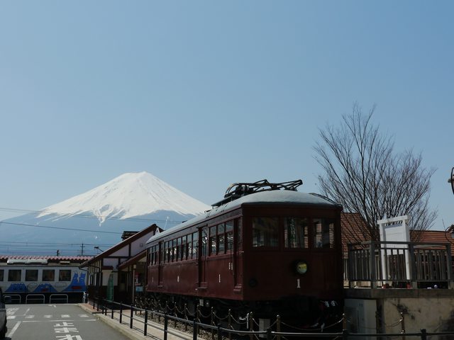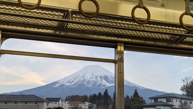 抵達河口湖車站看到大大的富士山大神一切都覺得超值~~~~~~