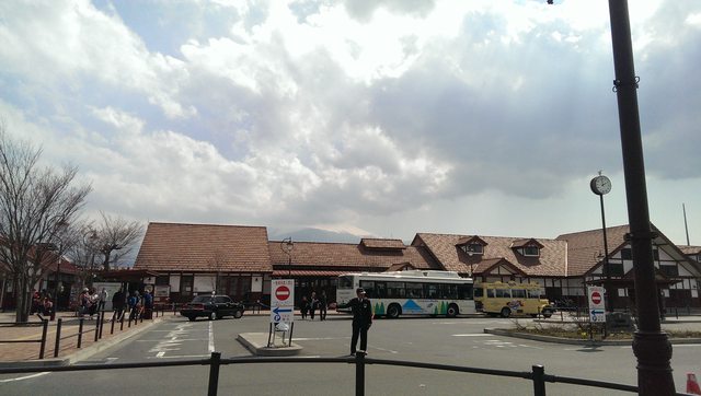 飯店送我們到到河口湖站 一樣行李先放寄物櫃