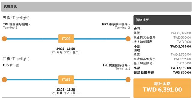 之後趁著日旅板上面提醒的虎航特價,買到了特價機票: