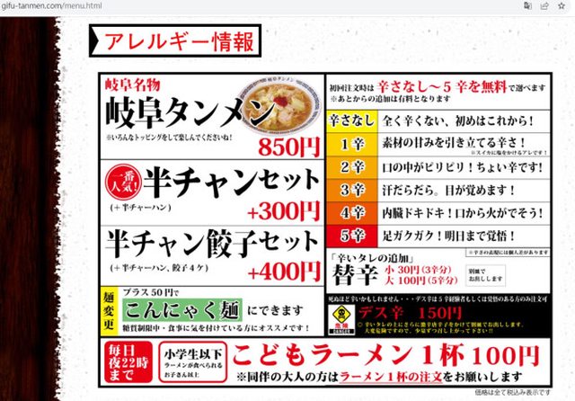 菜單很簡單就是一個岐阜タンメン而已,當中有0-5級的辣度可選
