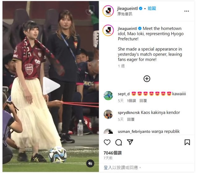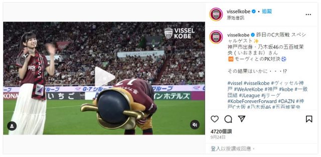 受邀開球的五百城也身穿神戶球衣可愛的登場