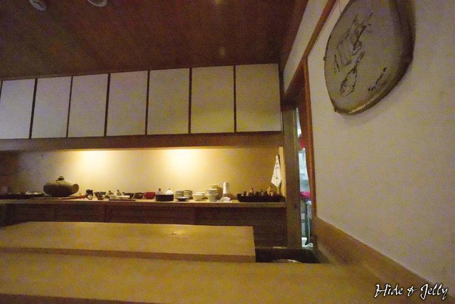 許晚餐的料理,才有板前的作業吧。吧檯前方的櫃子上,擺放著各種瓷器餐具,看起來都