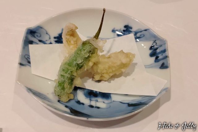 天婦羅是不辣的椒類加上章魚腳,份量不大但口味高雅,看起來是用高級的油去炸的,完