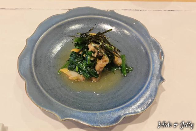 菠菜炒海瓜子,應該也是我們看到這兩種食材的第一次相遇,意外的合拍耶,日本菠菜真