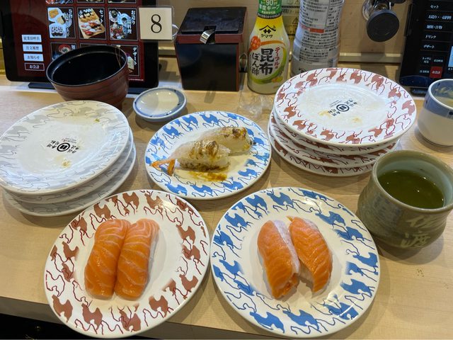 有鮭魚的圖案。
