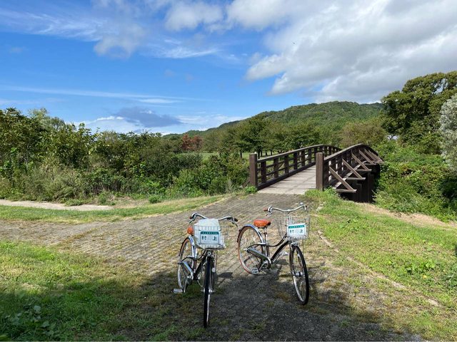出了車站,站前廣場有座牌樓,左手邊就是觀光案內所,我們在這裡租借腳踏車(一天50