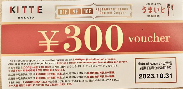 標題[贈送] 贈送KITTE博多餐廳抵用券