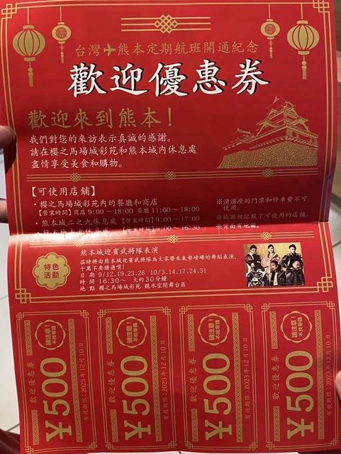 標題Re: [資訊] 台灣直飛熊本航班領取現金券