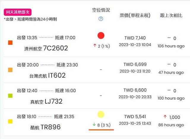 不過該項資料目前只針對酷航(TR)及濟州航空(7C)提供