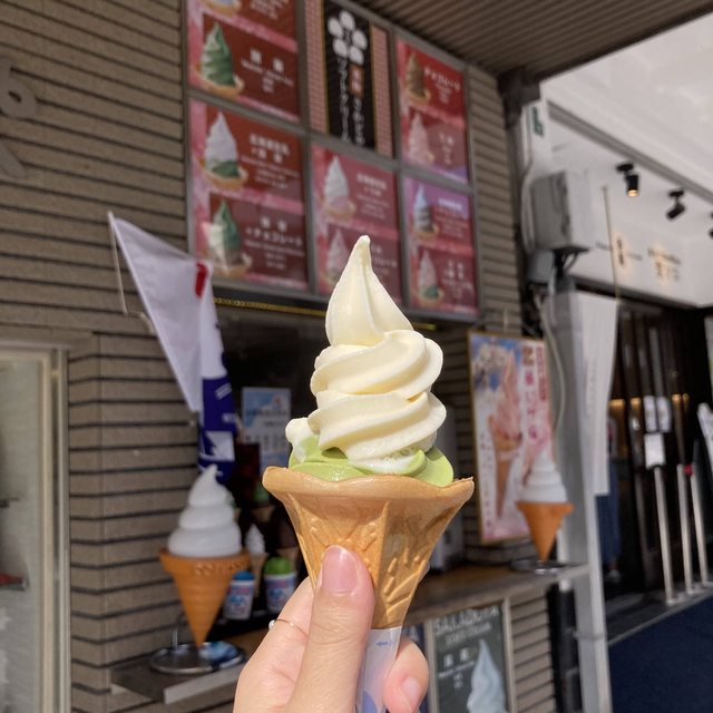 參道上的550元牛奶+抹茶冰淇淋 牛奶很驚豔的好吃!!