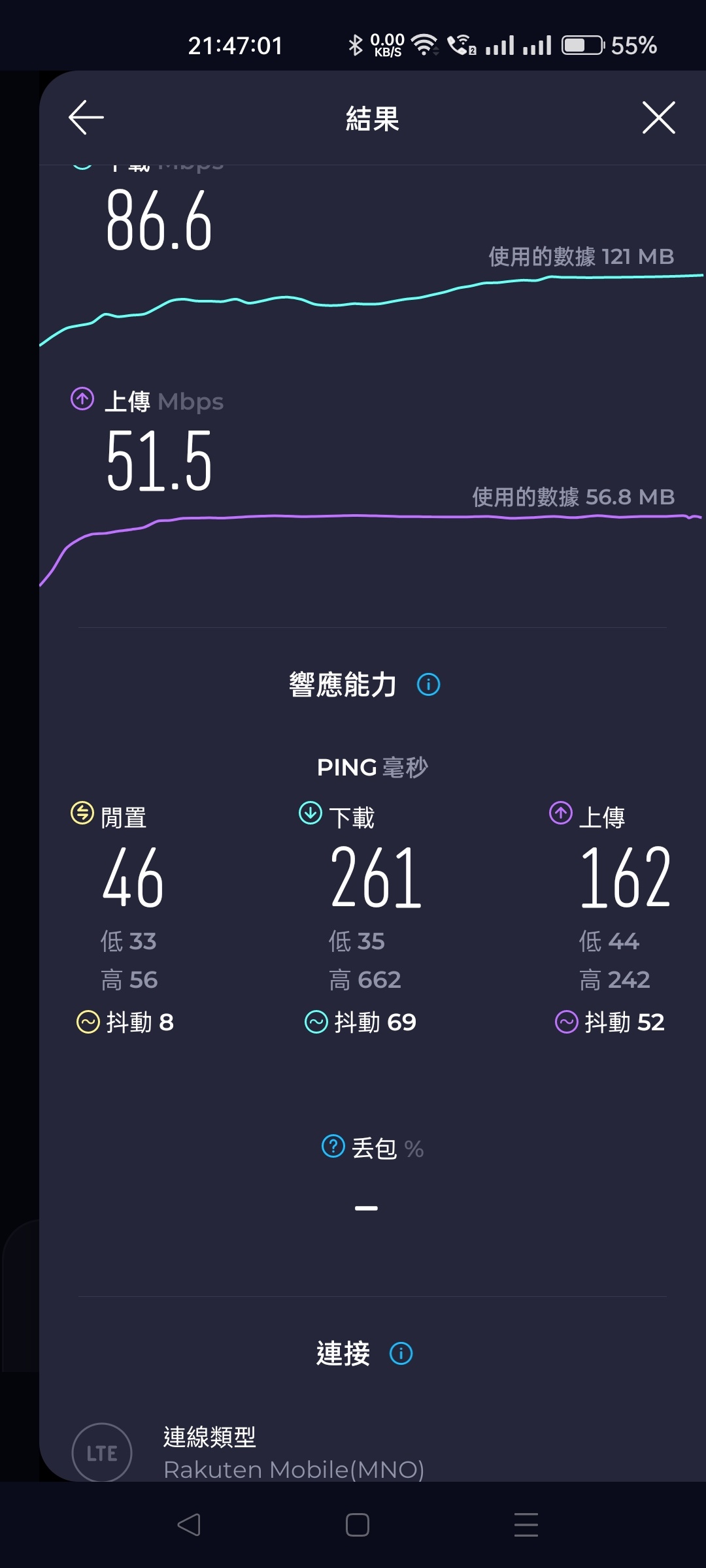 不快(沒有測速憑感覺),最慘的是在河口湖排不動的時候,網路也完全不動,同行友人