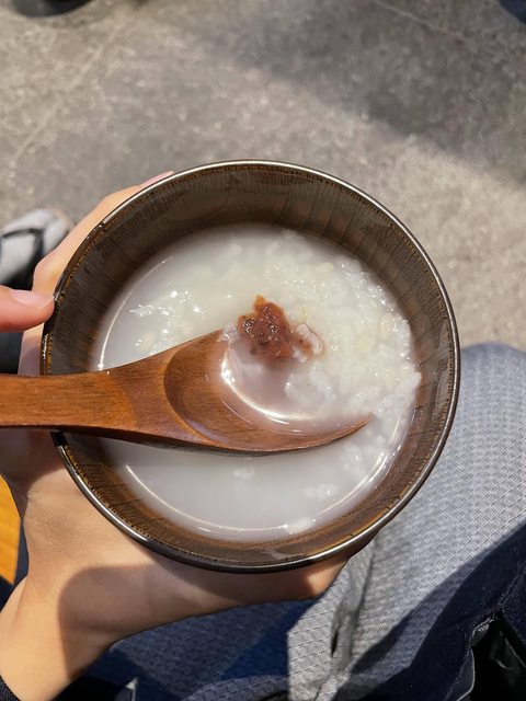 一早6:30吃特製飯,裡面有飯跟薏仁,可以另外加的醬是梅子,還算ok啦可是好早。