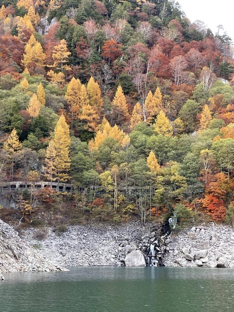 接著下去到黑部湖水壩那邊,風景超讚的,應該是目前為止楓葉景最美的。