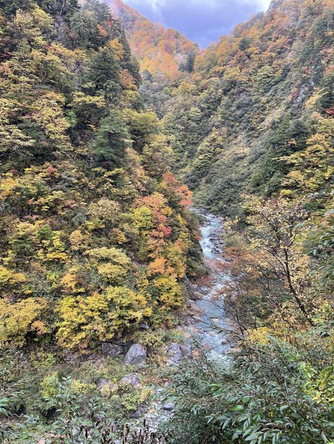 先在下面寄了行李之後,為了回程去長野不要太趕,我們先去問了站務員哪裡搭去長野的特急巴士。站務員問我們怎麼來的,我們說從信濃森上走路來的、她還很驚訝的說做的到嗎?XDD總之最後有問到,我們放心的拿出昨天的立山黑部單向票給他打九折買纜車票,就快樂的坐上去了。很可惜我們上去坐的是往前看,坐一半發現應該要坐往後看的!往下看超美!!而且今天天氣難得最好,名副其實的三段楓葉。