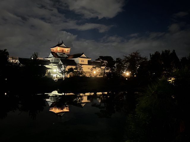 晚上住的地方好像有點像小紅燈區,但一人才3400日元而且房間乾淨就算了,而且離富山城很近,晚上有去散步一下還不錯。