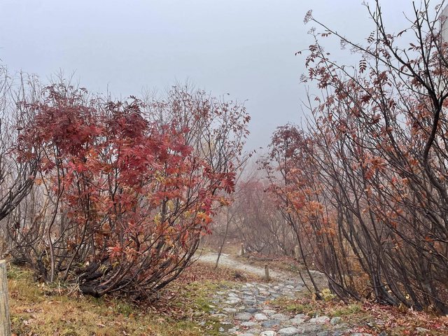 室堂這時候已經下雪了,完全沒有楓葉,出乎我們意料之外。