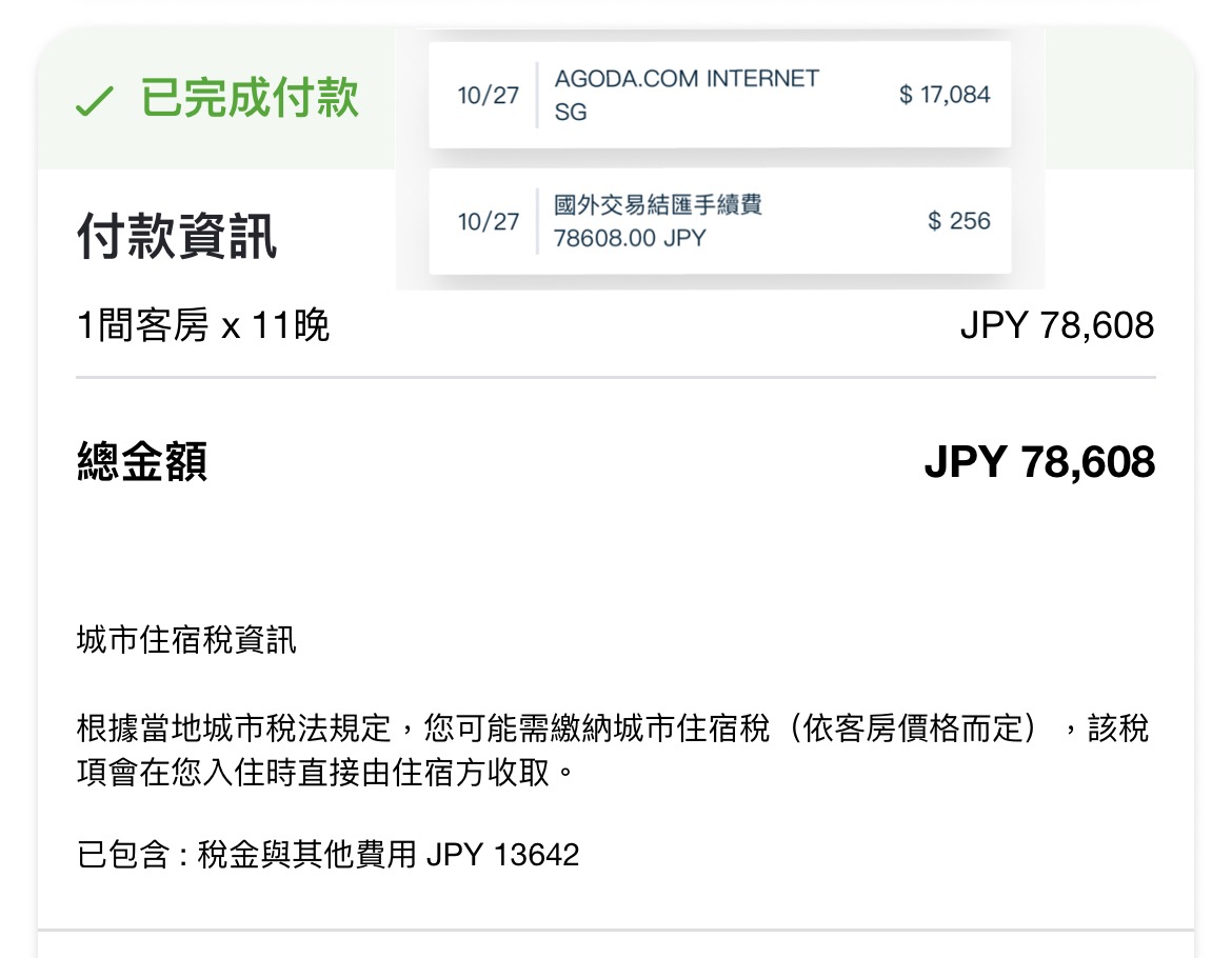 levs : 我今年六月用日本信用卡訂台灣的旅館,訂單寫NT2506 11/02 20:10