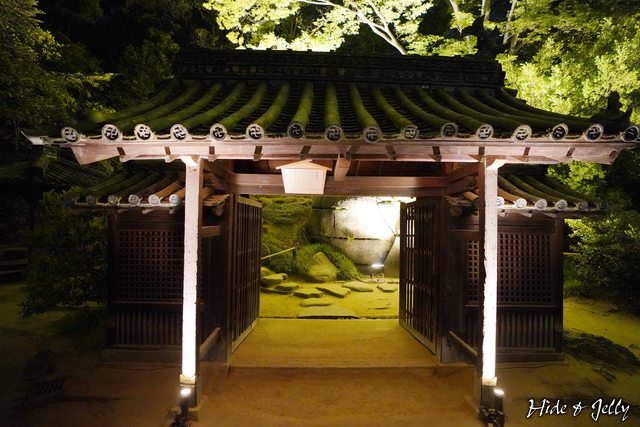 沢の池旁慈眼堂的山門也打上樸實的燈光。