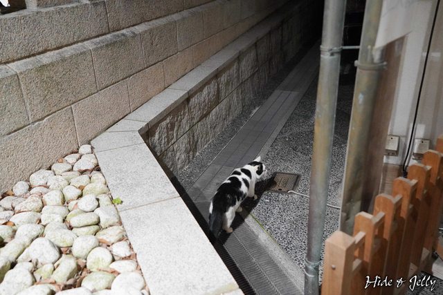 閉園的時間還是不可抗,我們晚上8:30前後準備離開後樂園,在巴士等候處看到了一隻肥