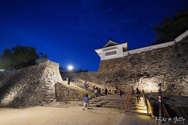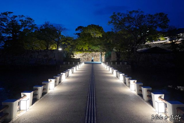 跨越內堀的「內下馬橋」,夜晚也點起像是迎賓大道般的燈光,觀迎感十足。