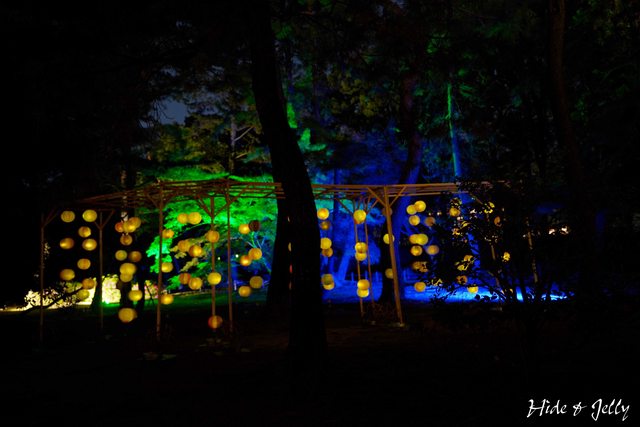沢の池北側的樹林間,也有燈籠點綴的區域。不過藍色燈光可能太神秘,結果沒有人敢靠