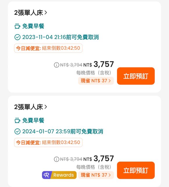時間竟然只有一小時! 回訂房頁面認真一看,他同一個房型和方案,有兩種免費取消的