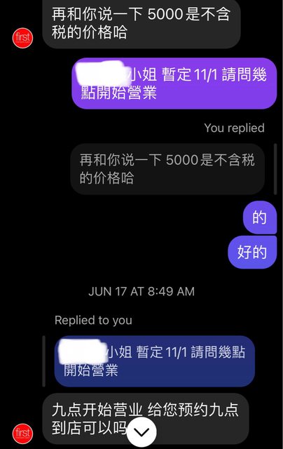 我拿出Ig對話說「可是之前預約時說是5000耶」,對方態度很差質問好幾次「這個人是誰