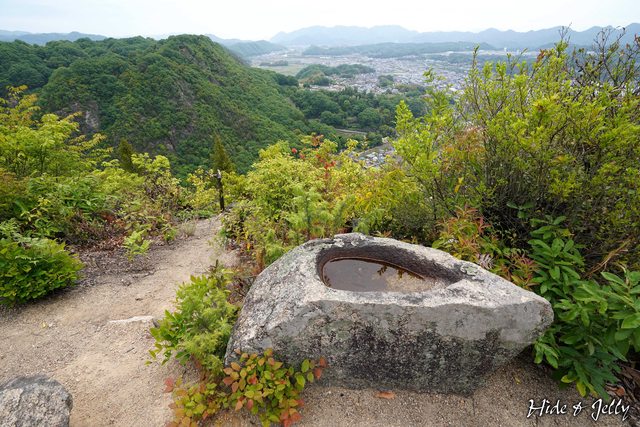 手水缽旁的開闊區域,就是新高山城的最東側了,這裡可以俯瞰腳下的沼田川,還可以與