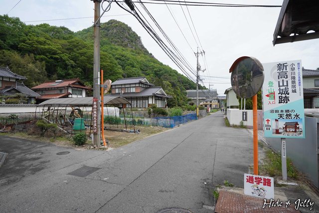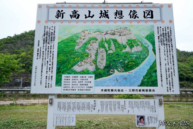 渡過本鄉橋,就可以看到新高山城的指標了。