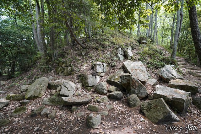 往本丸的路上,會在一個轉角處看到散落的石垣,這裡理論上應該是本丸的石垣遺跡,但