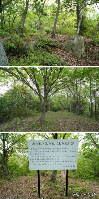 連續上坡15分鐘後,可以看到中の丸(二の丸)跡的牌子,這裡已經幾乎是山頂部開拓出來