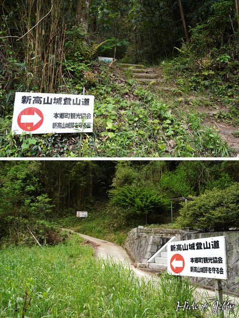 水泥路的末端,就是登山道的起點,一路上都會有「本鄉町光觀協會」與「新高山城守護