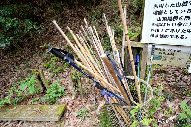 一旁提供的登山杖中,還出現了非竹竿的登山杖,真是太高級了吧!
