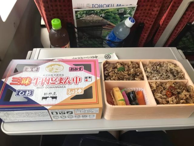 簡單在車站買了一份三種口味的牛丼便當