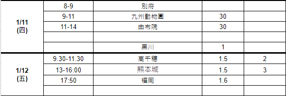 → snowrei : 九州沒甚麼記憶點?行程沒有別府、熊本、阿蘇等等 11/09 08:36