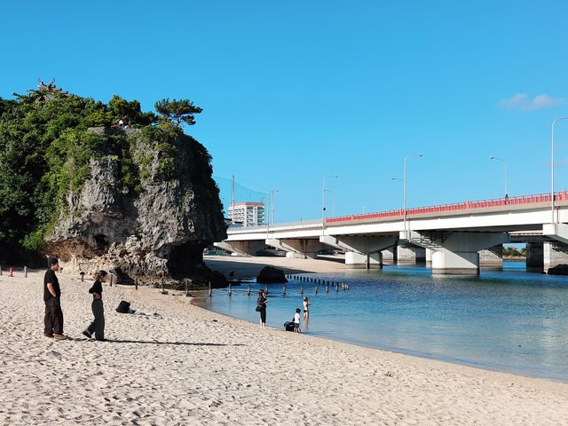 波上宮就在旅館附近,起床後步行去看看。宮的東側沙灘被高架擋住景色,不過海很清澈