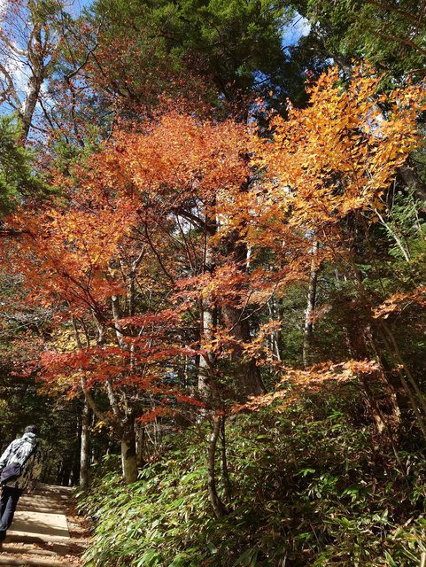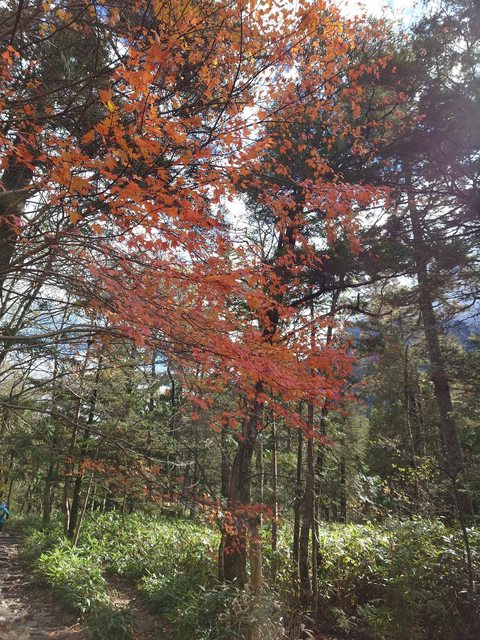 返回河童池路上 還有楓葉可看