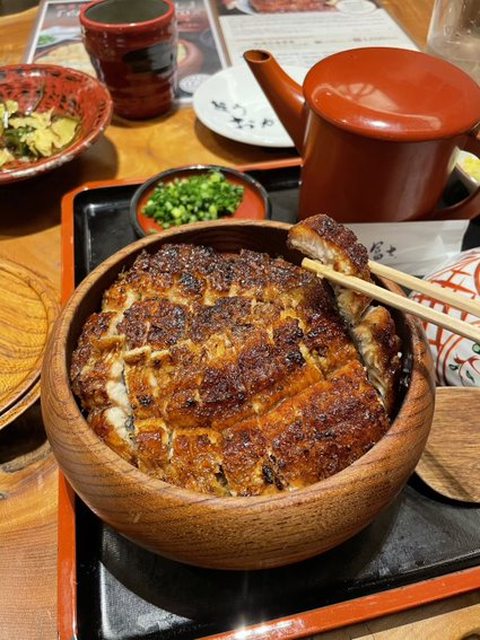 從來沒吃過這麼好吃的鰻魚飯,大碗公鋪滿切好的鰻魚,鰻魚皮烤的很脆,完全沒有魚刺